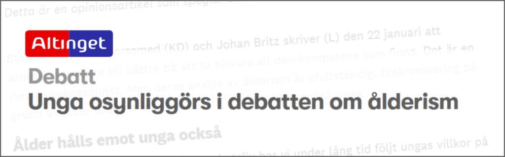 Altinget Debatt 2026-02-12 Ann-Therése Enarsson: Unga osynliggörs i debatten om ålderism »