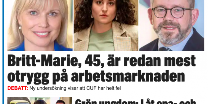 Problemet med dagens arbetsrätt är inte att ”Britt-Marie” är för trygg och gör det för svårt för unga att få jobb. Tvärtom är det hon som känner sig som mest otrygg i arbetslivet, enligt nya siffror vi tagit fram tillsammans med SOM-institutet. Det skriver Futurions Ann-Therése Enarsson och Carl Melin i sitt svar till Cuf:s ordförande Réka Tolnai på Expressen Debatt idag.