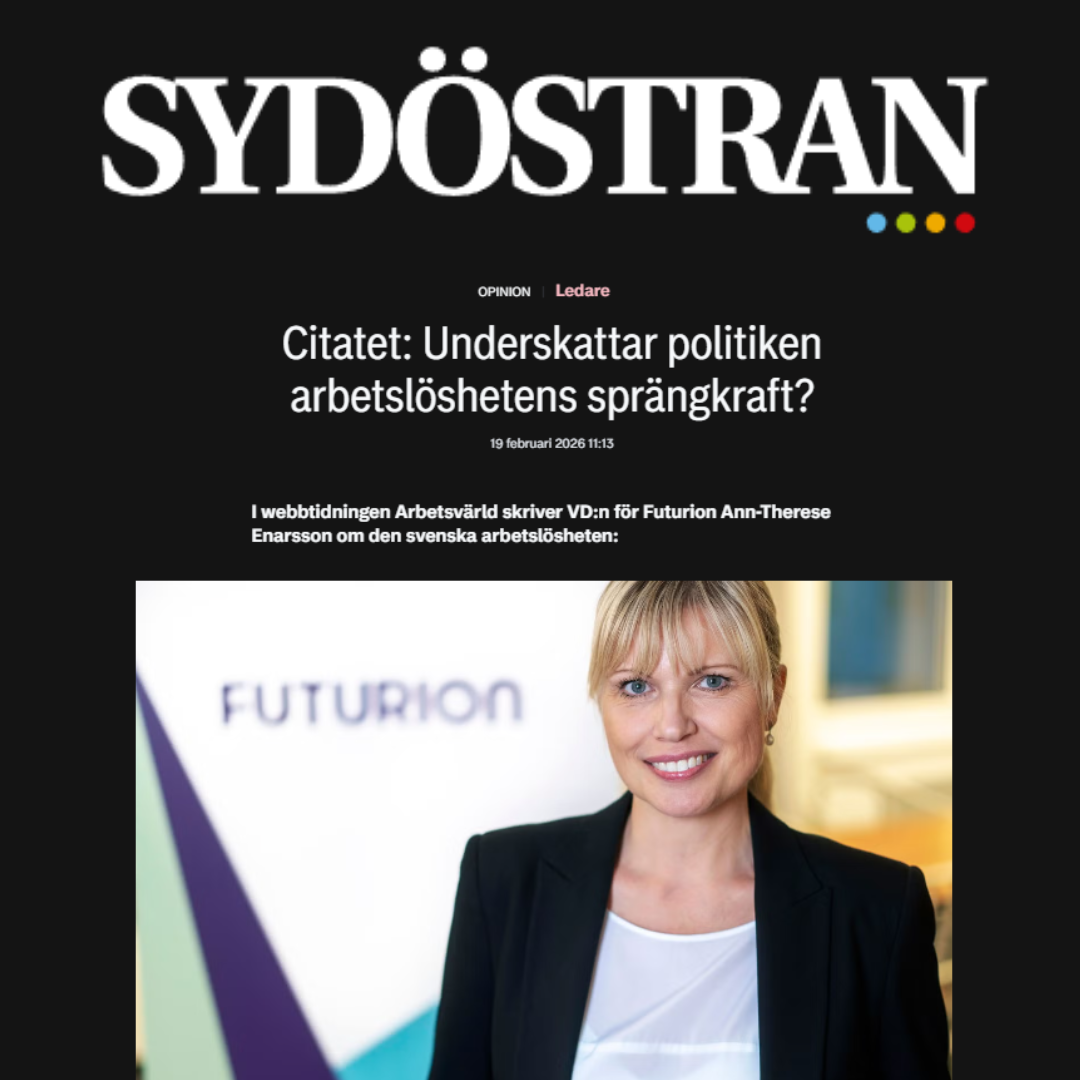 Sydöstrans opinionssida citerar delar av Futurions vd Ann-Therése Enarssons debattartikel från Arbetsvärlden:
